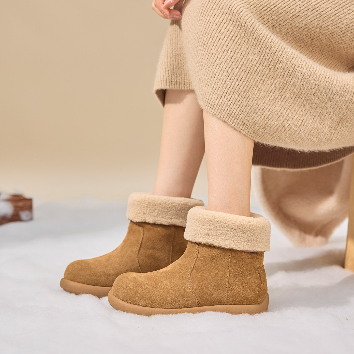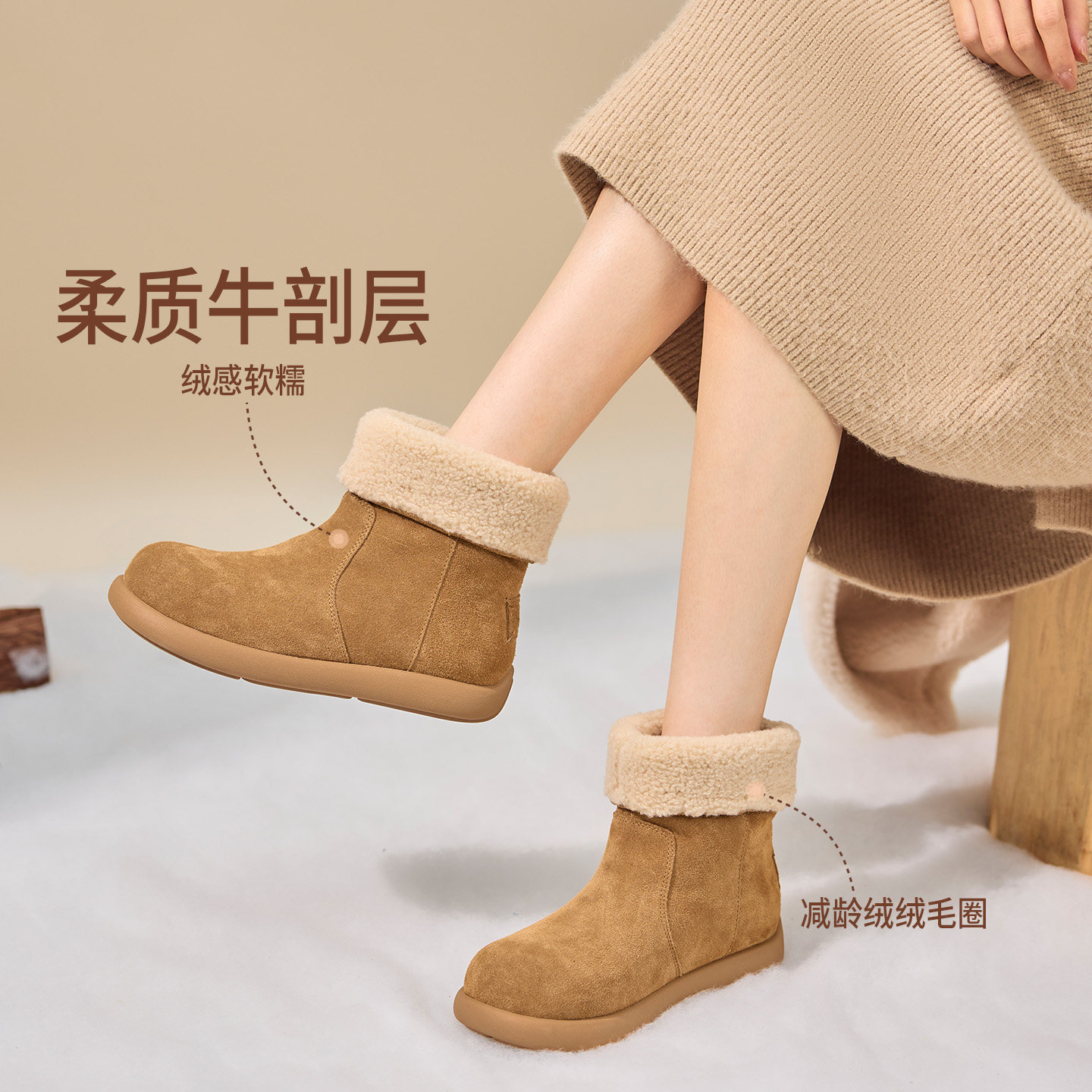 奥康 女鞋2025冬季勃肯加绒加厚保暖雪地靴厚底女棉鞋短门店发货