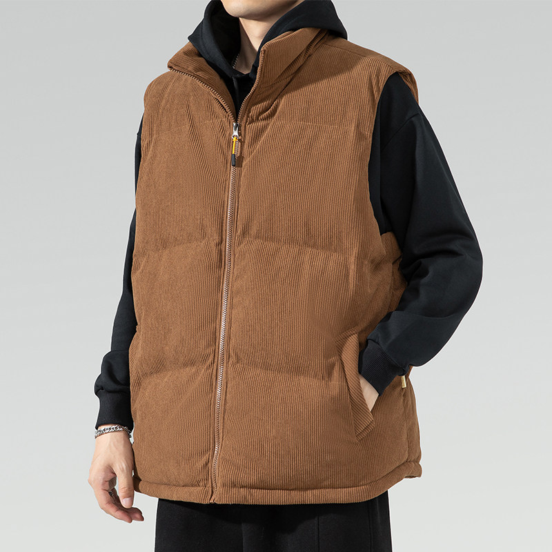 羽绒棉马甲男士秋冬加厚灯芯绒立领马夹潮流外套保暖背心坎肩外穿