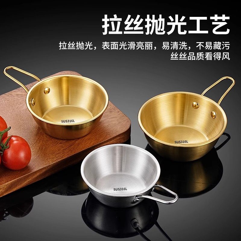 韩式316不锈钢米酒碗带手柄调料碗加厚泡面碗料理店专用热凉酒碗