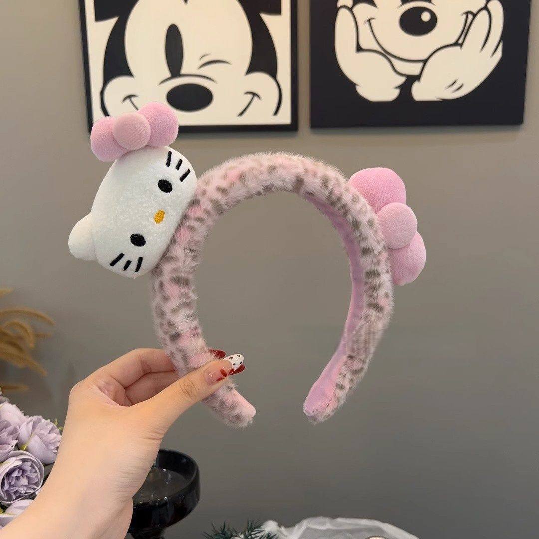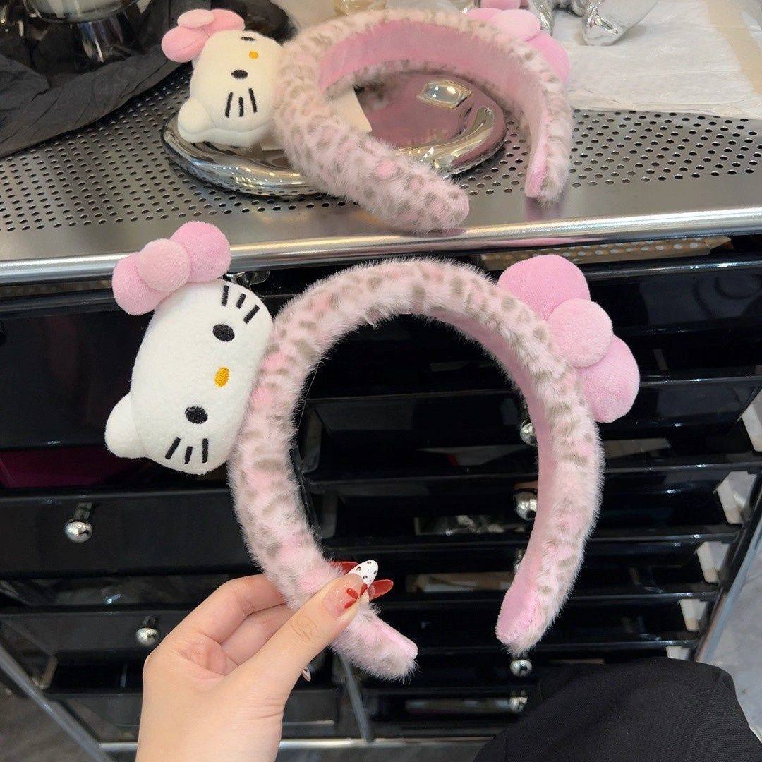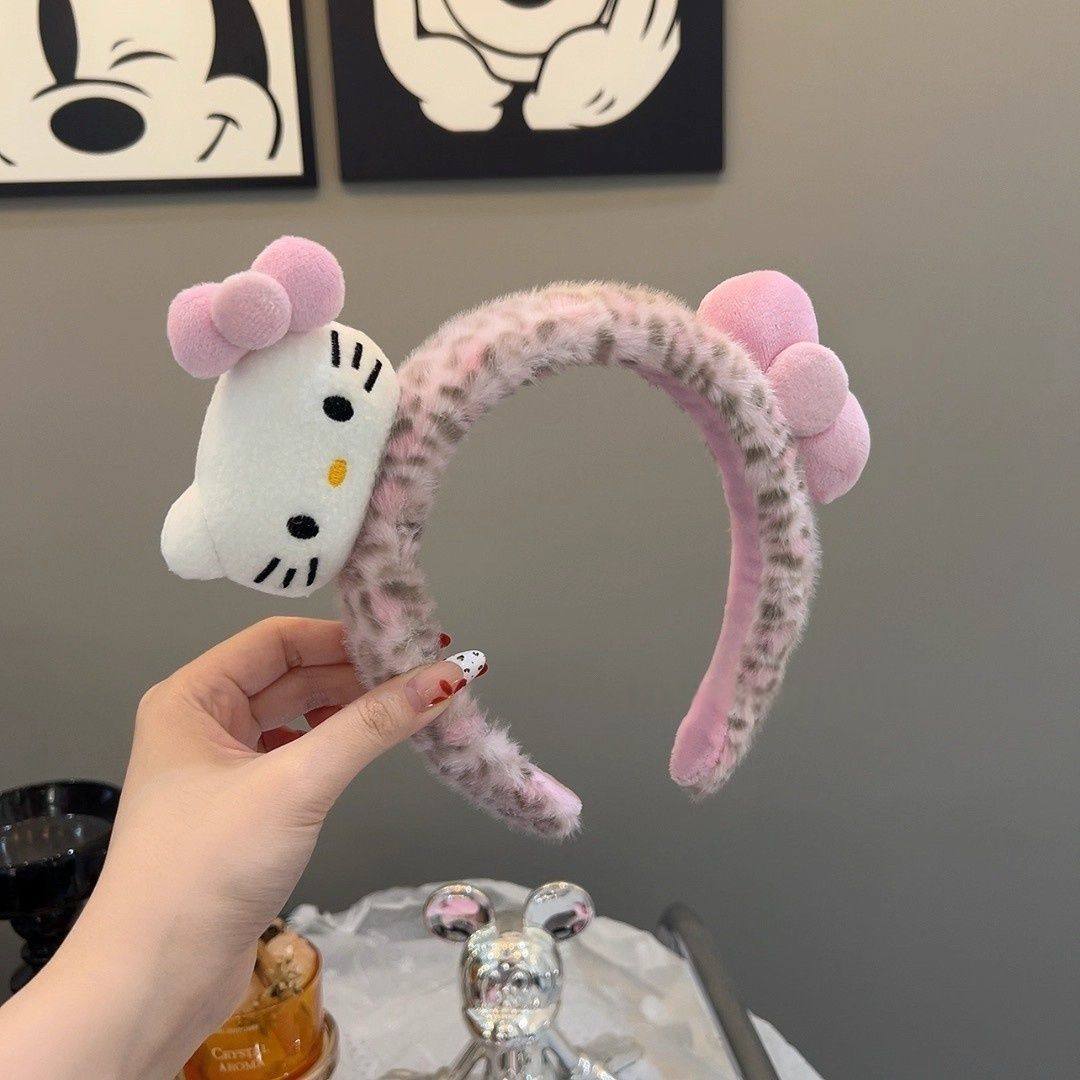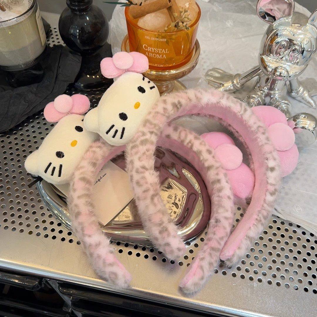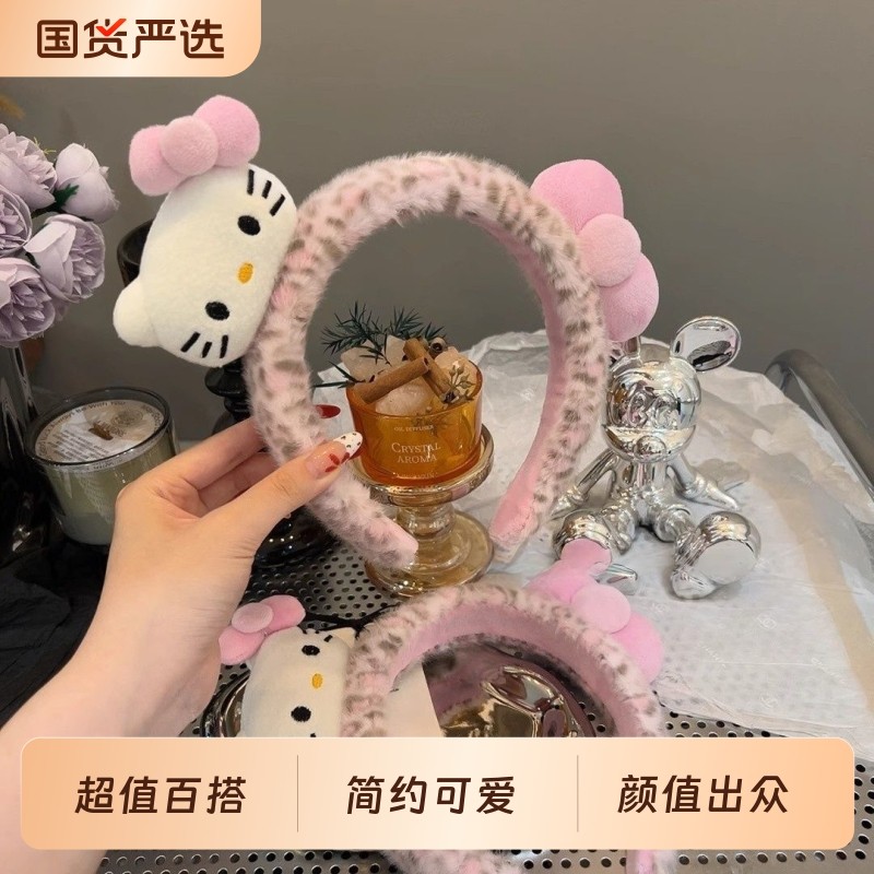 新款超可爱卡通kt猫豹纹发箍毛绒洗脸化妆发卡宽边高颅顶头饰发饰