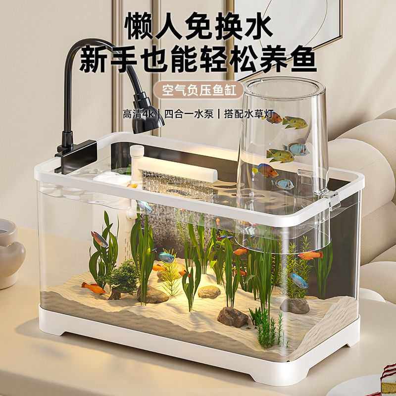 负压鱼缸中小型金鱼缸生态造景家用塑料客厅中小型桌面水族箱