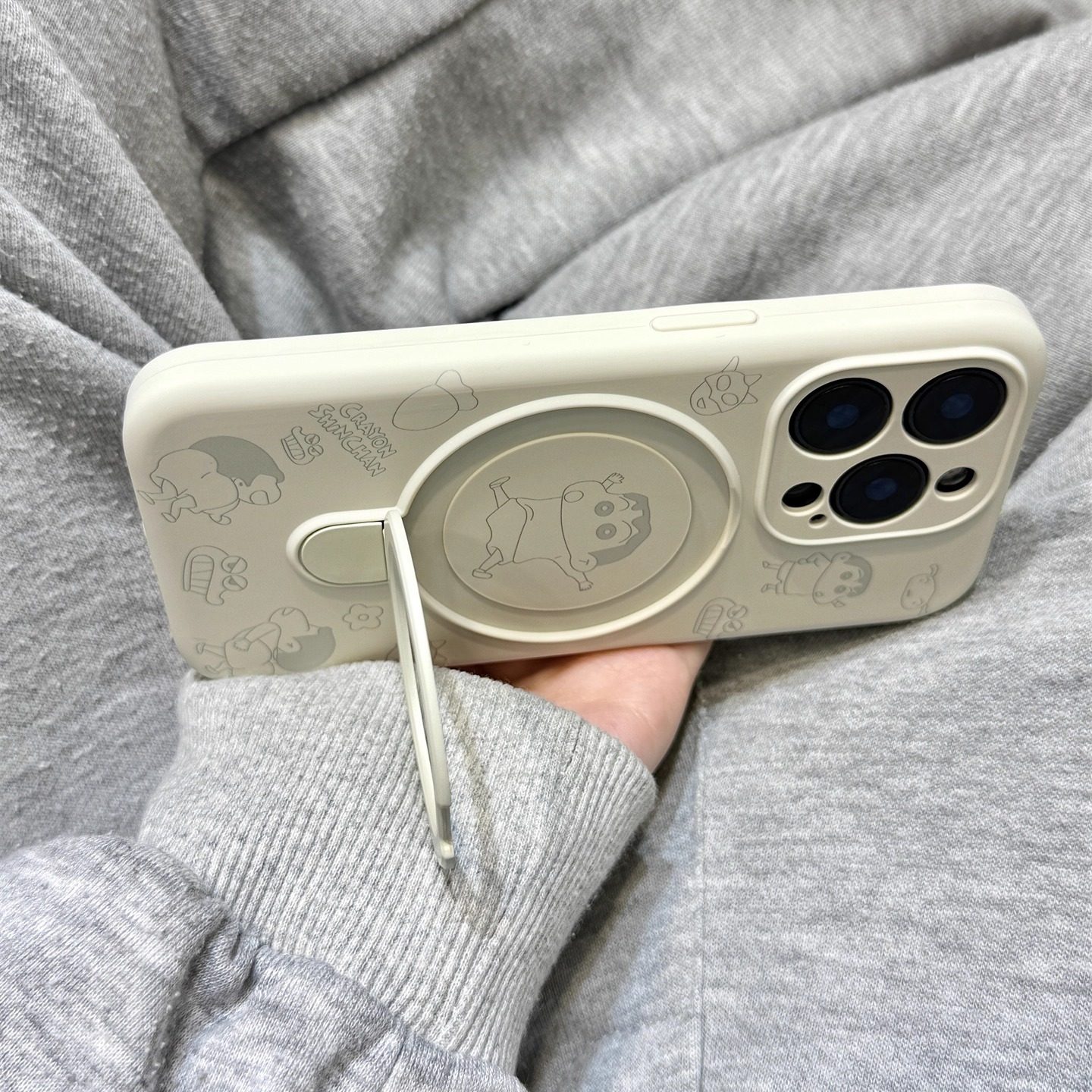 古董白玩耍线条蜡笔小新支点支架适用于iphone17promax苹果14磁吸手机壳15新款16pro女13液态硅胶17Air防摔套