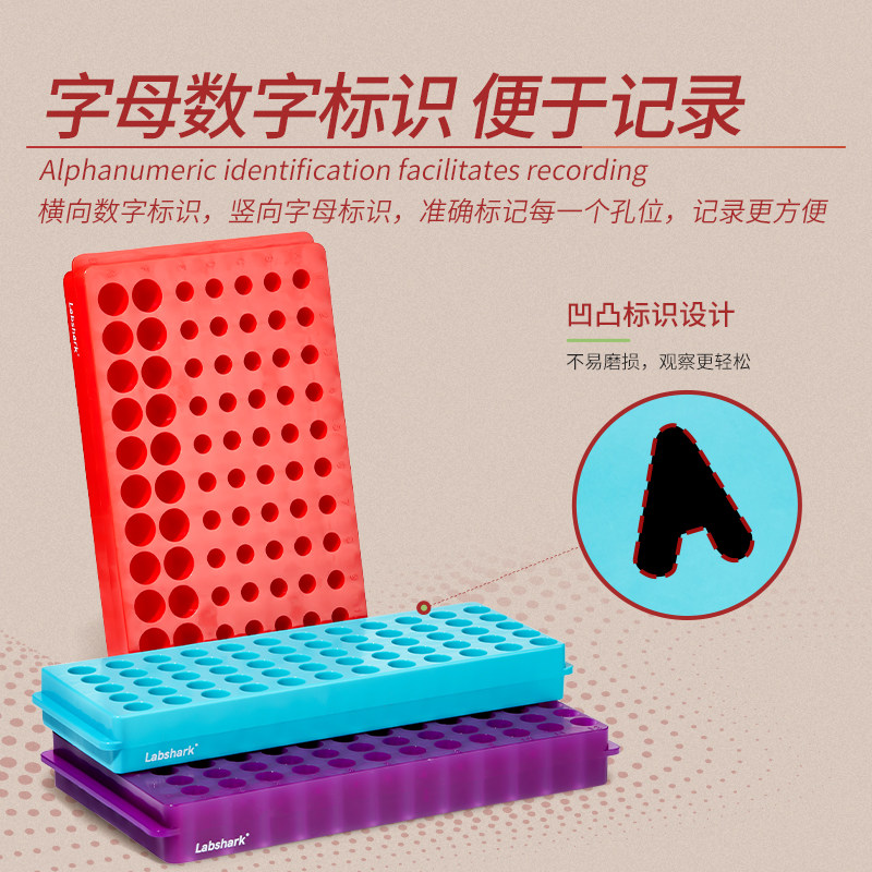 Labshark双面离心管架ep管架PCR管架多功能管架比克曼生物塑料60孔96孔板实验室试管架0.5/1.5/2ml双面板架