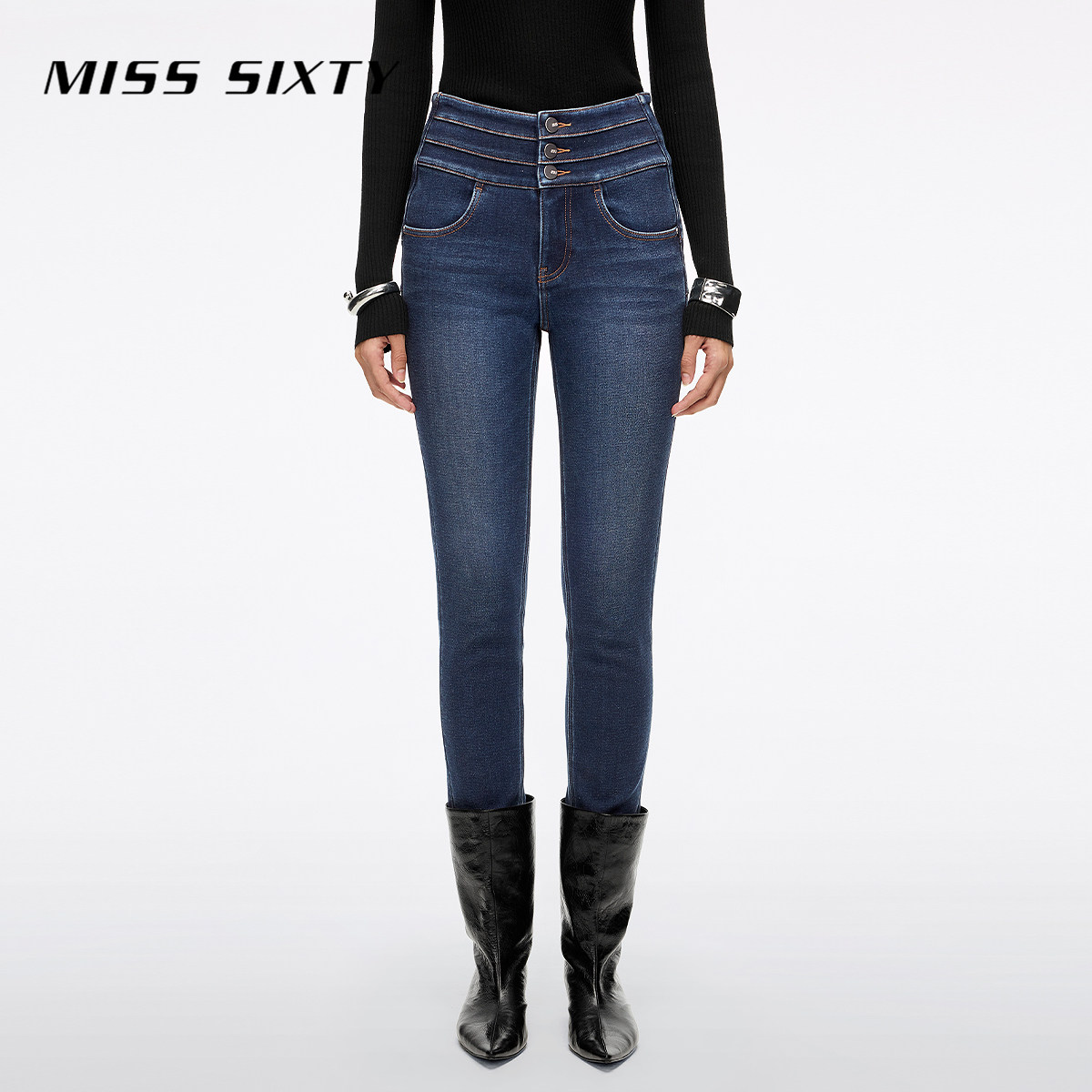 【保暖复合绒】Miss Sixty2025冬季新款牛仔裤三环腰加厚小脚靴裤