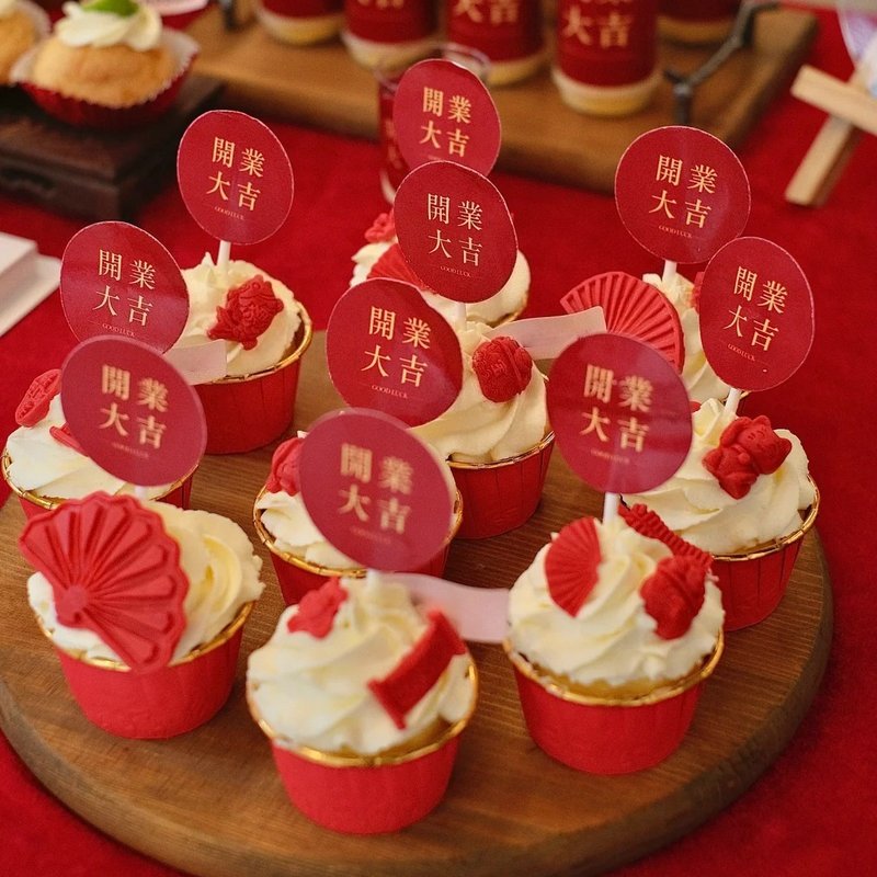 红色开业活动典礼开业大吉蛋糕插牌插件插卡甜品台装饰慕斯杯贴纸