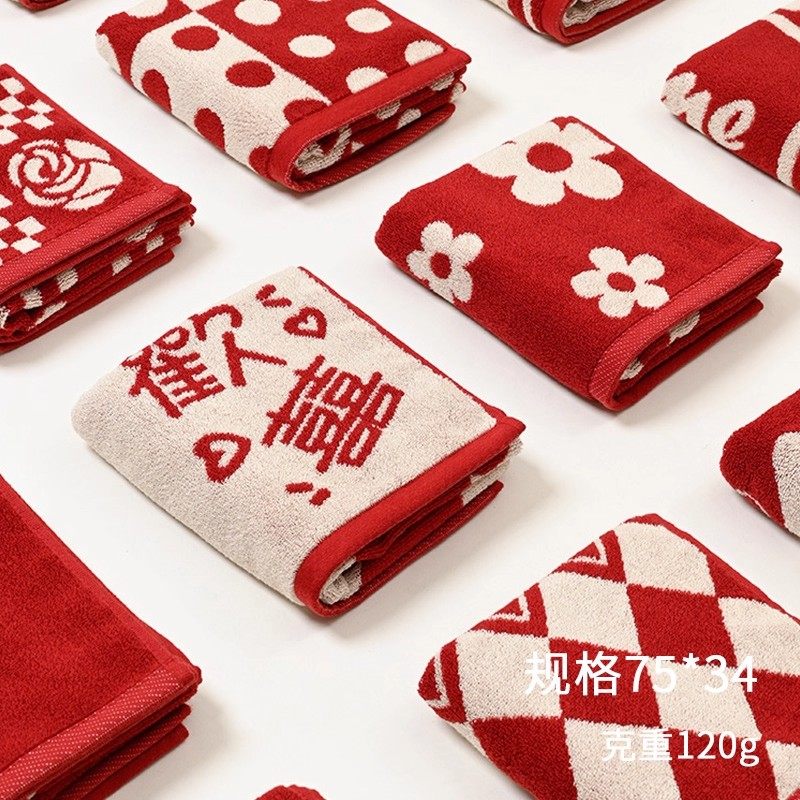结婚毛巾订婚新婚一对红色喜字喜事用女方陪嫁洗脸用品回礼伴手礼