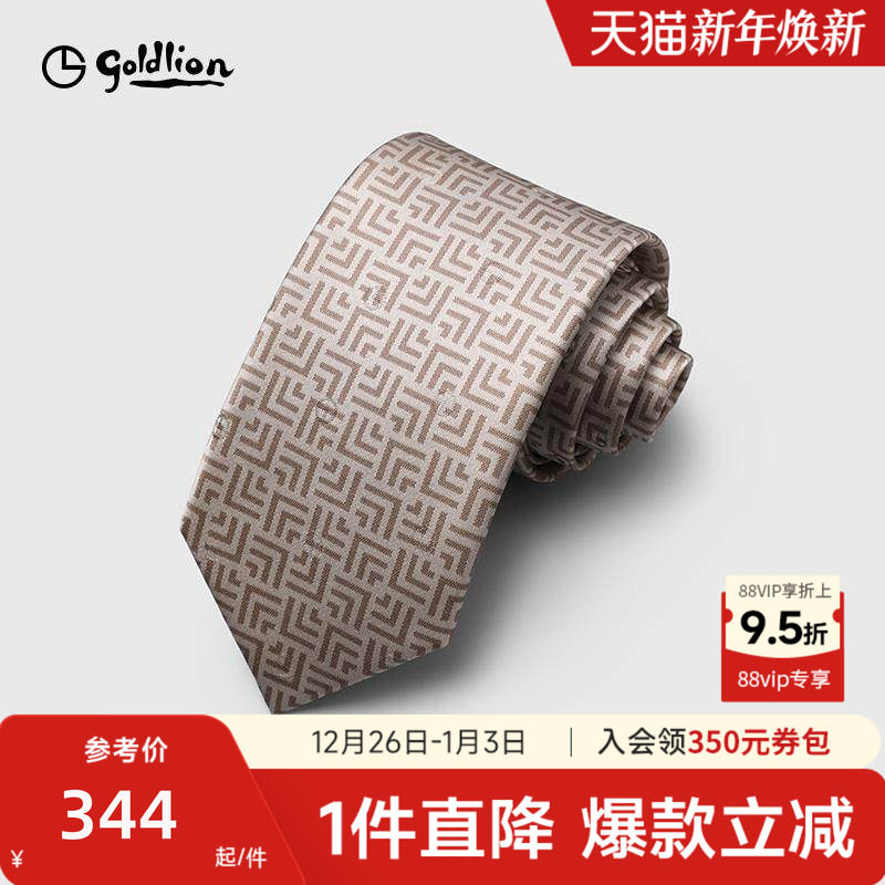 Goldlion/金利来男士桑蚕丝质感复古几何色织印花休闲正装领带男