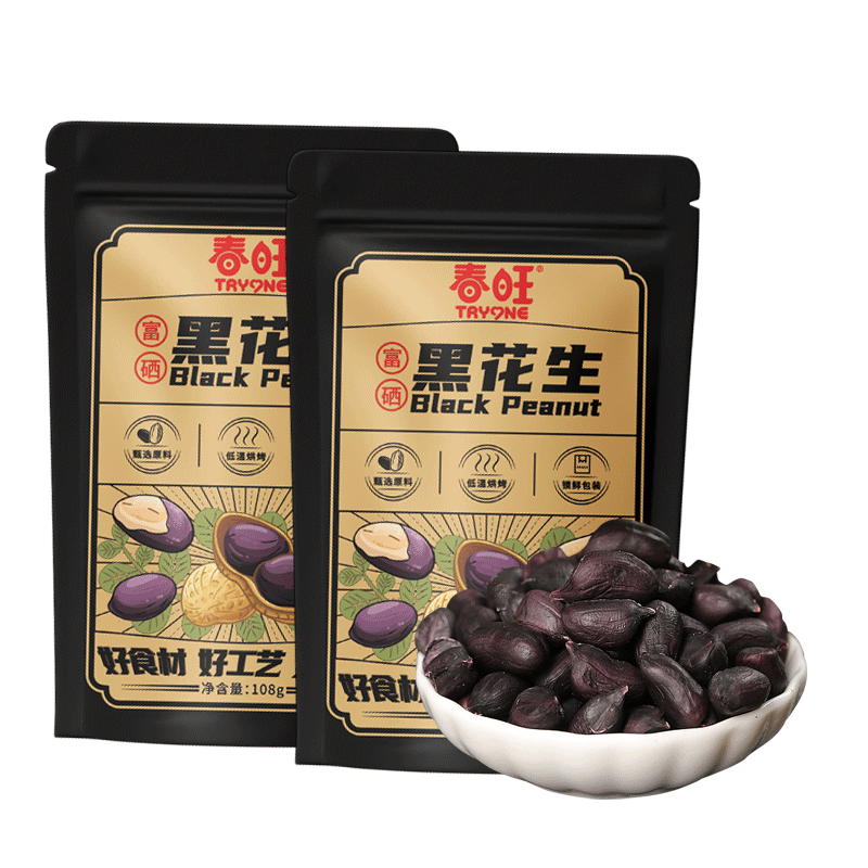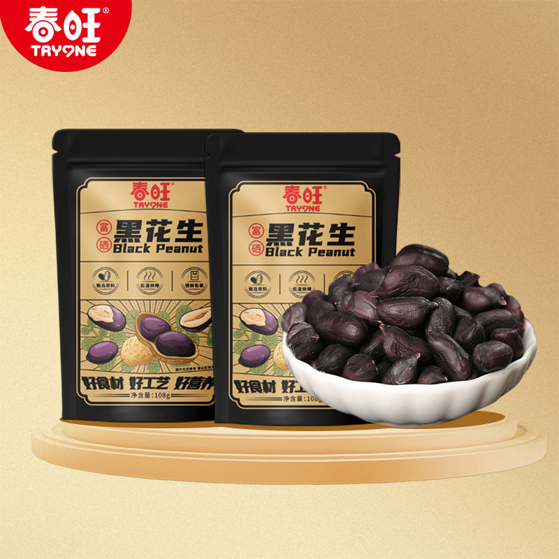 春旺花生零食下酒菜茶点五香烘焙黑皮富硒花生108g/袋