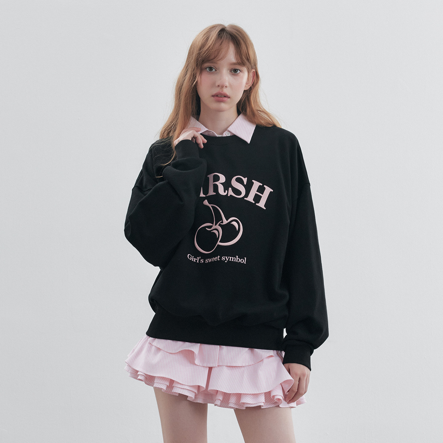 樱桃KIRSH 经典立体刺绣圆领卫衣女2026春夏休闲宽松韩版女生上衣
