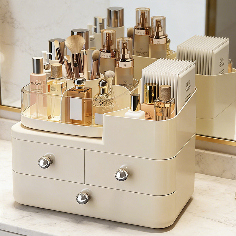 桌面化妆品收纳盒新款高级感可旋转梳妆台护肤品收纳抽屉式整理盒