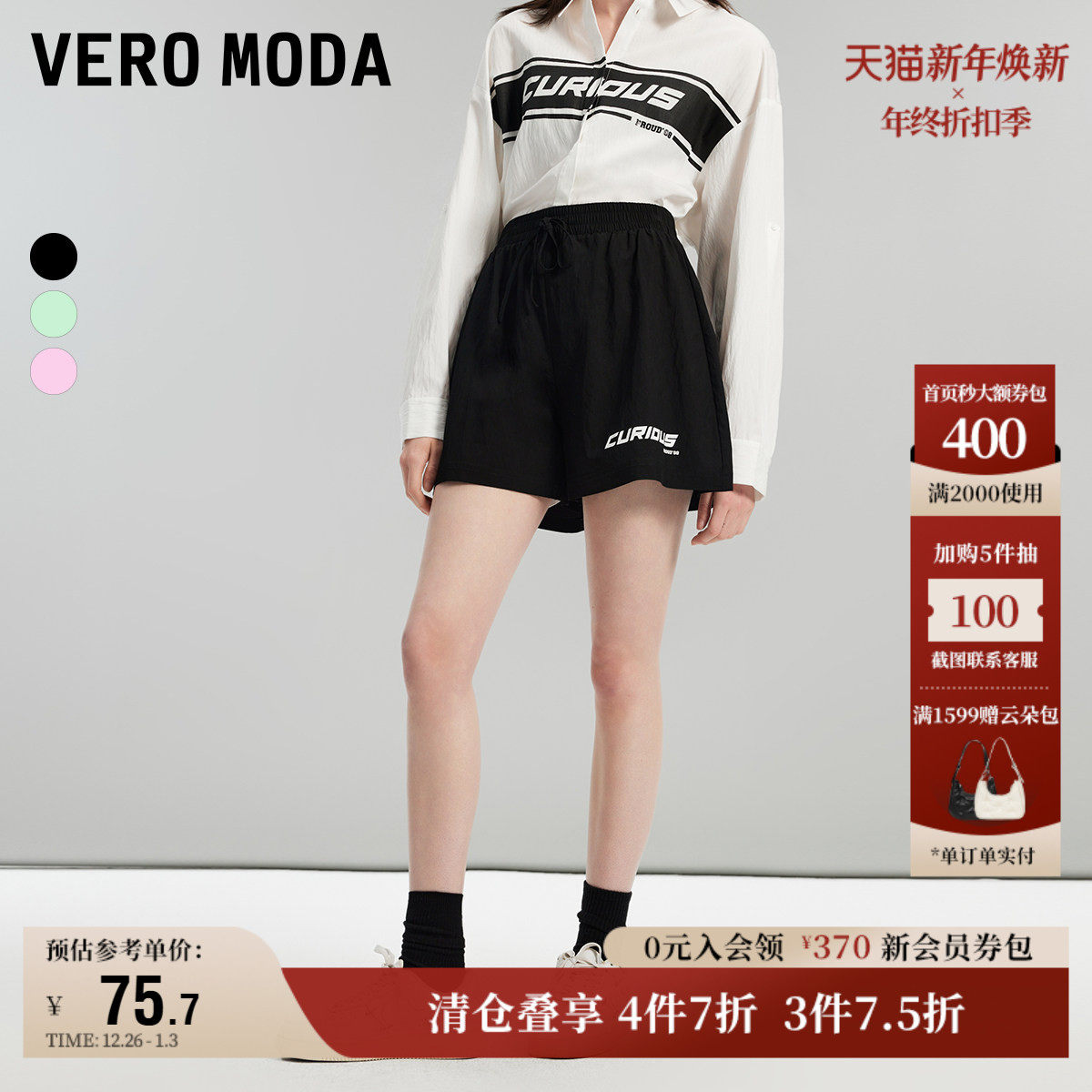 Vero Moda奥莱短裤女夏季新款高街潮流休闲宽松字母直筒百搭裤子