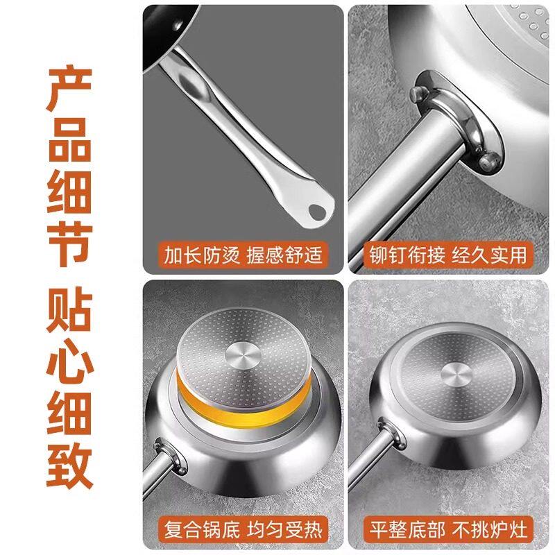 不锈钢胡桃木手柄平底锅宝宝辅食锅热油锅食品级多功能汤锅炒菜锅