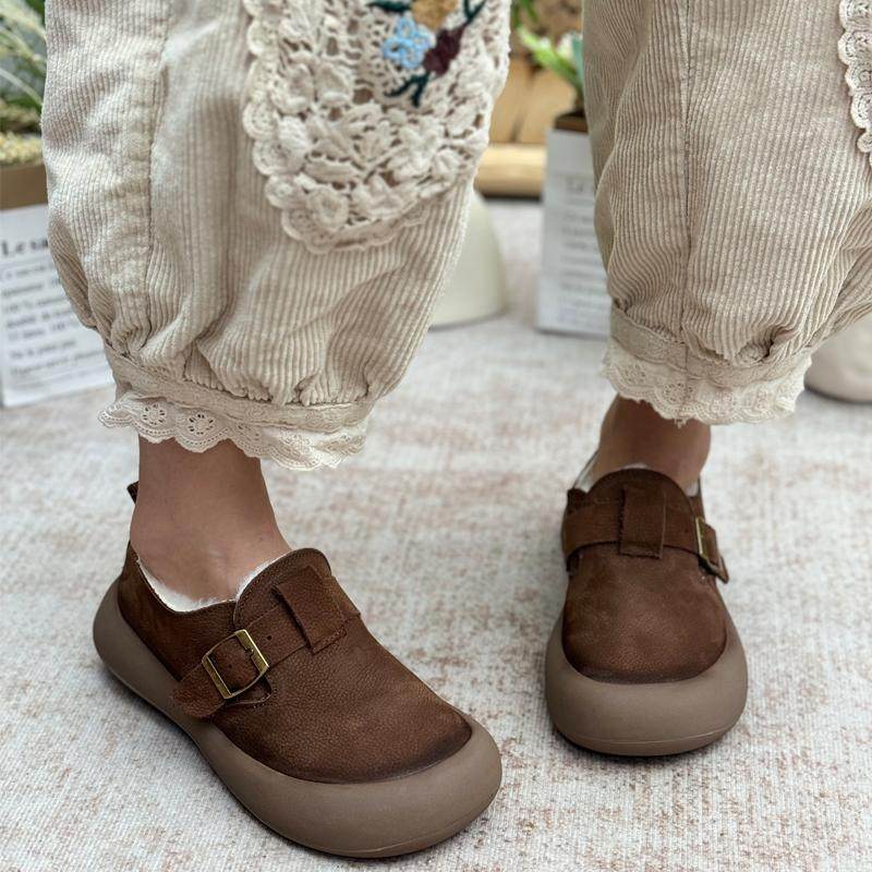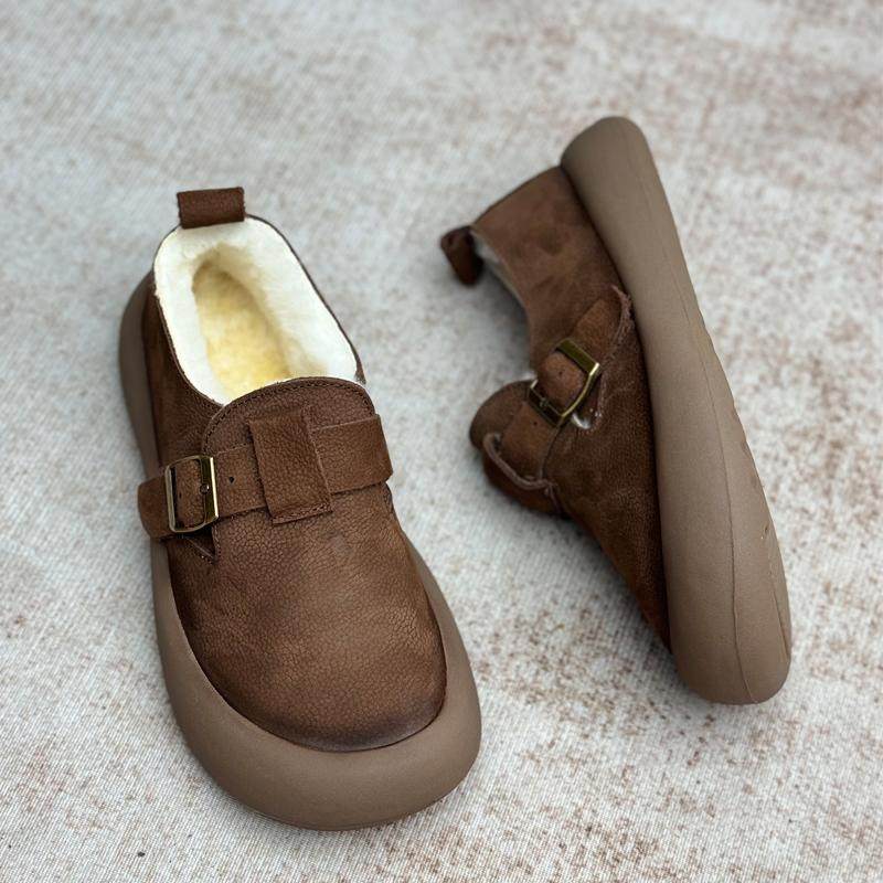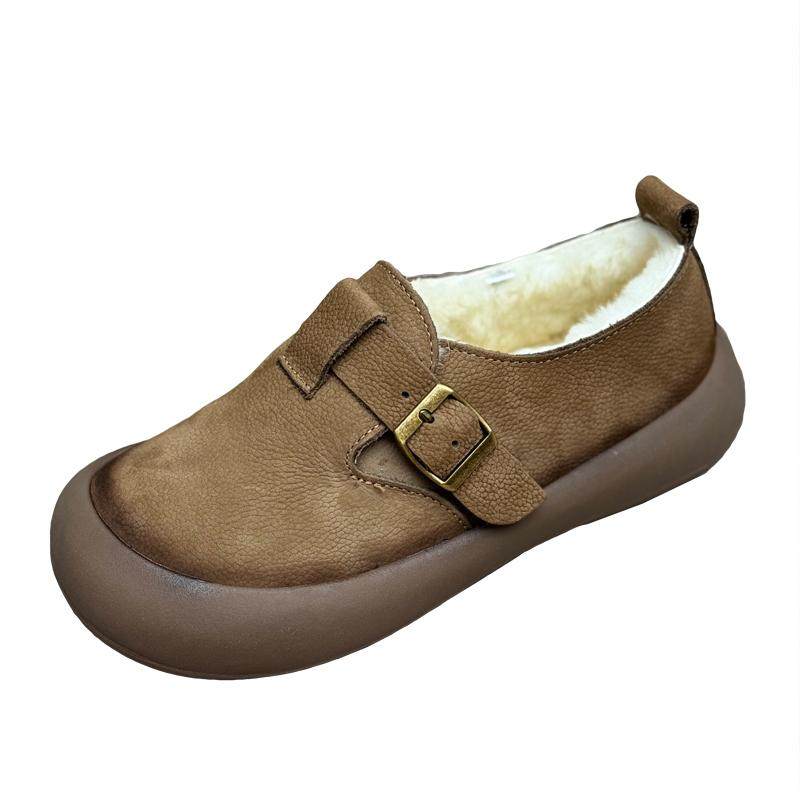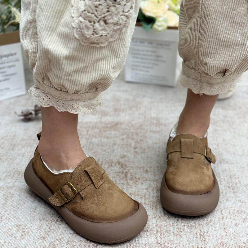 真皮加绒勃肯鞋2025冬季新款厚底纯羊毛棉鞋加厚保暖女鞋乐福鞋