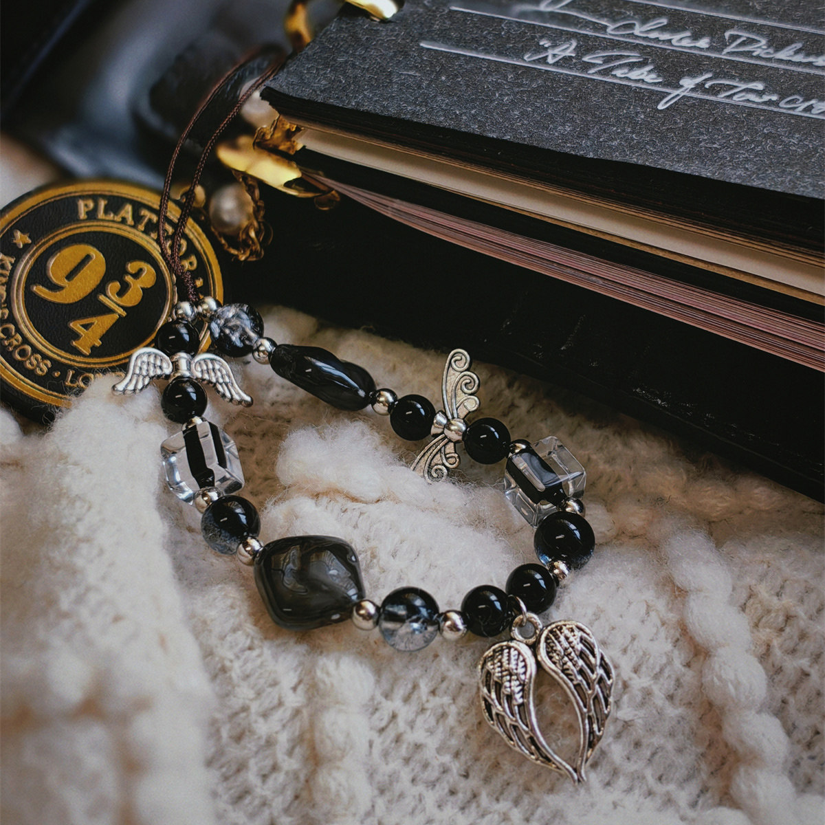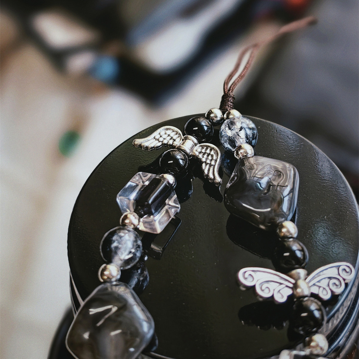QY手工朋克风活页挂件魔鬼与天使手帐装饰链条书签INS欧美风活页