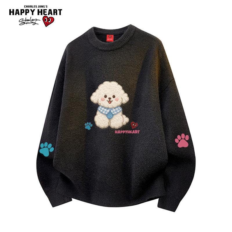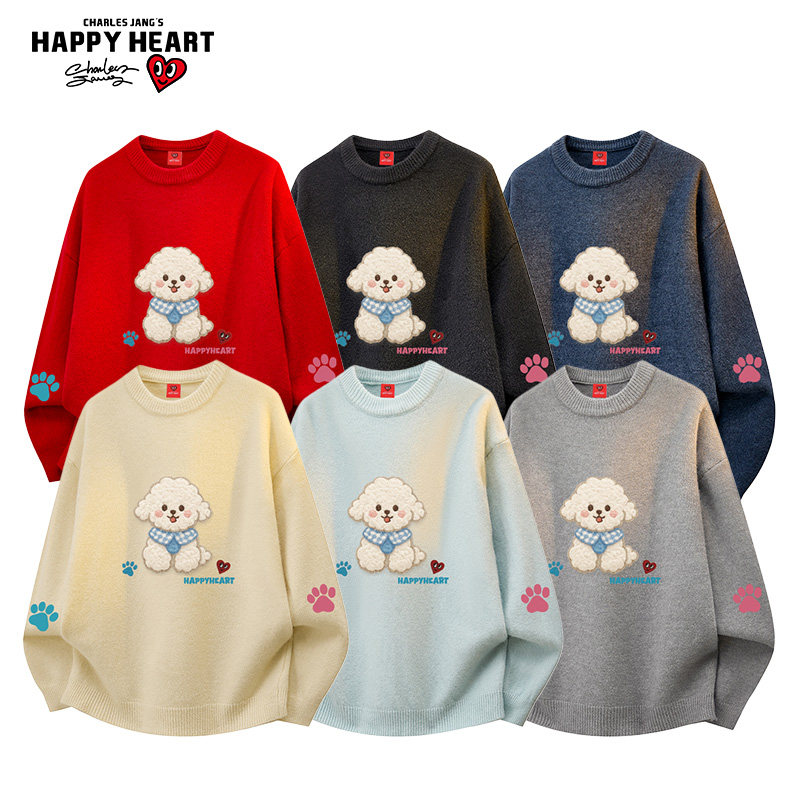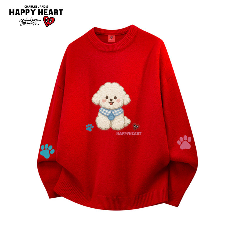 查尔斯桃心 可爱小狗印花圆领毛衣男女秋冬季绵羊绒软糯情侣内搭