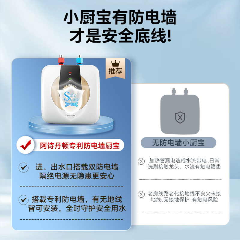 阿诗丹顿小厨宝家用厨房电热水器速热储水即热式一级能效小型8L升