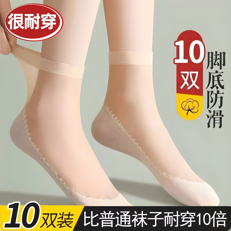 棉底丝袜女短袜防臭春秋夏季薄款水晶短防勾袜子中筒袜女纯棉脚底