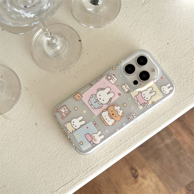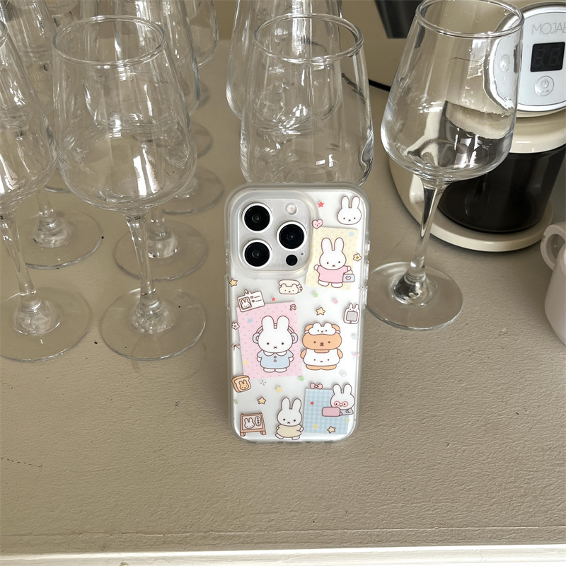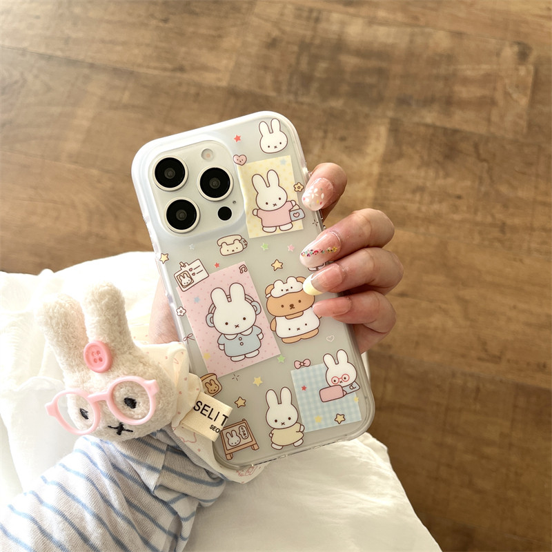 日韩ins可爱卡通少女心小熊小兔贴纸插画吊坠16promax适用iphone15pro双层磨砂不沾指纹14手机壳苹果13防摔女
