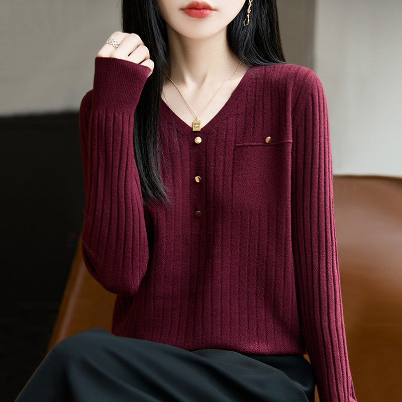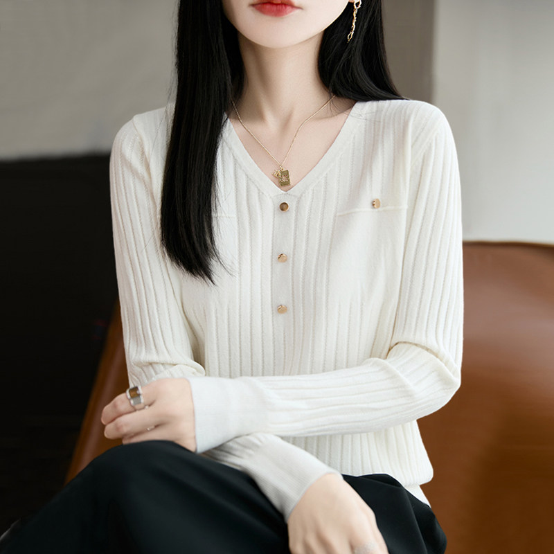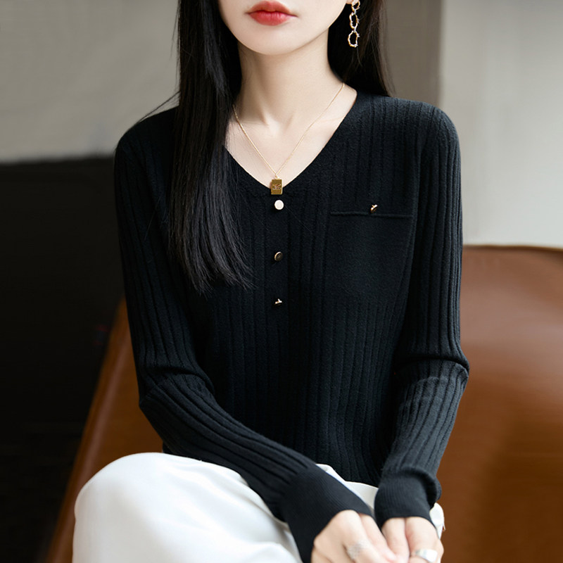 撤标撤柜(A)V领针织打底衫女春秋内搭上衣洋气大码女装秋冬毛衣