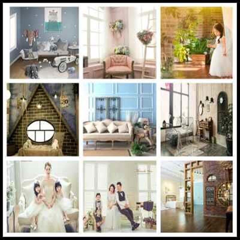 新款儿童实景摄影棚婚纱实景影楼装修简易韩式无闪棚店面设计制作