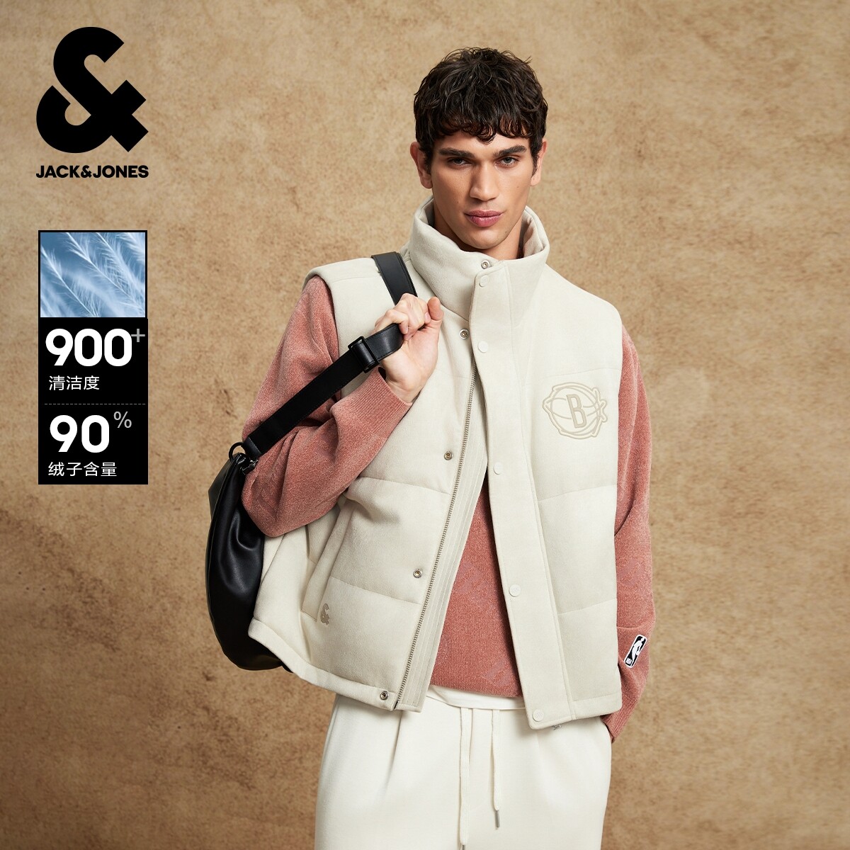 杰克琼斯NBA联名篮网队2025年新款男装冬季马甲印花立领羽绒上衣