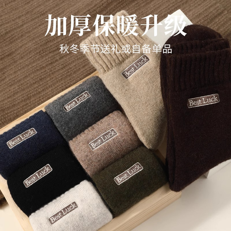 袜子男款羊绒中筒袜秋冬季加绒加厚保暖袜男士居家睡眠袜防臭长袜
