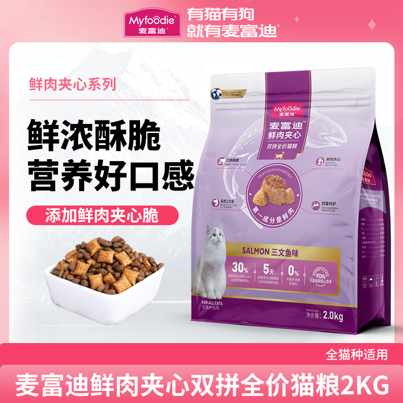 麦富迪猫粮三文鱼鲜肉夹心成猫粮英短蓝猫双拼平价2kg全价鱼油