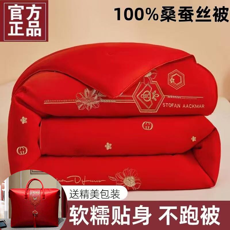 手工蚕丝被100%桑蚕丝子母被春秋被加厚冬被结婚被芯婚庆红色被子