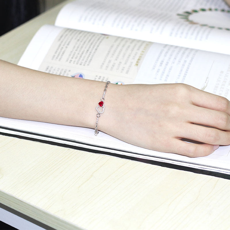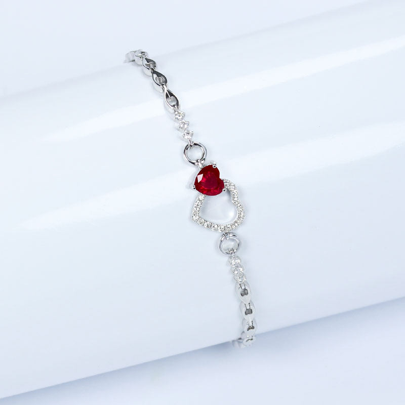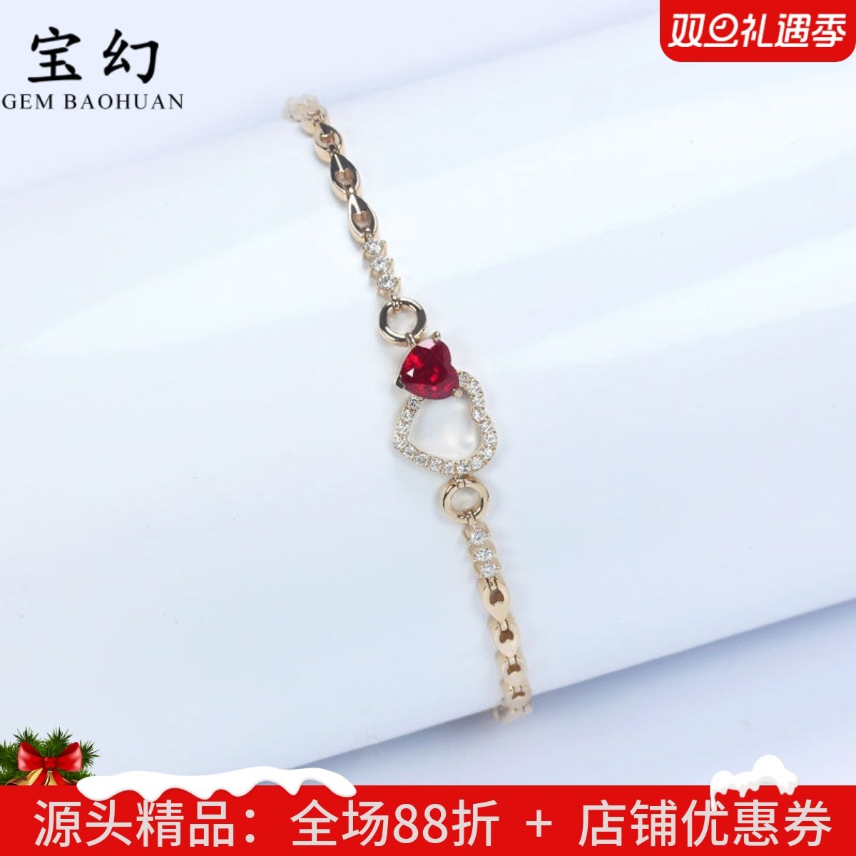 18K金缅甸心形天然鸽血红宝石手链 正红色不翻转钻石手排手镯女款