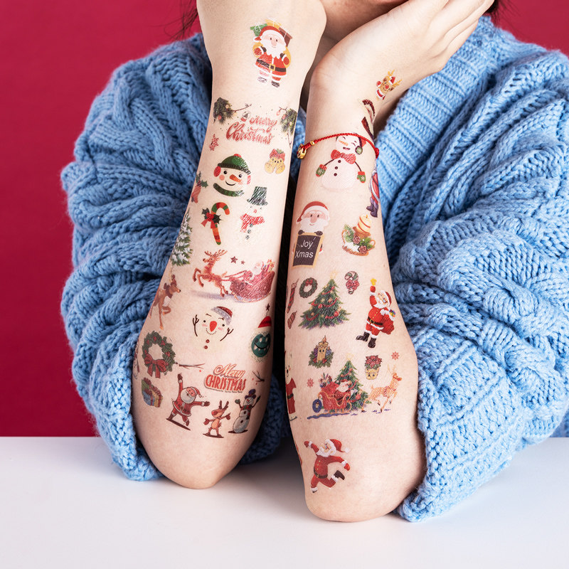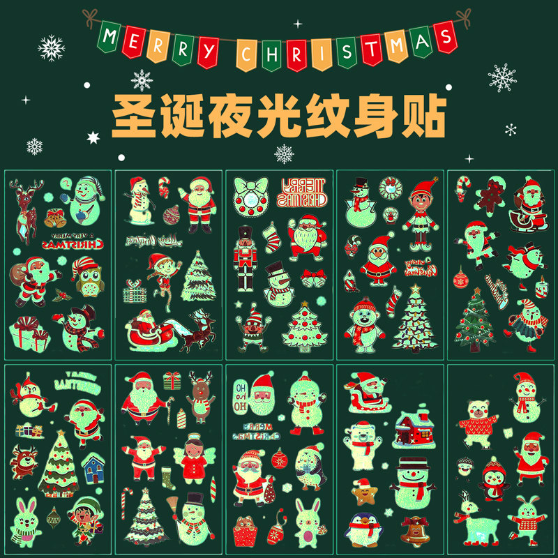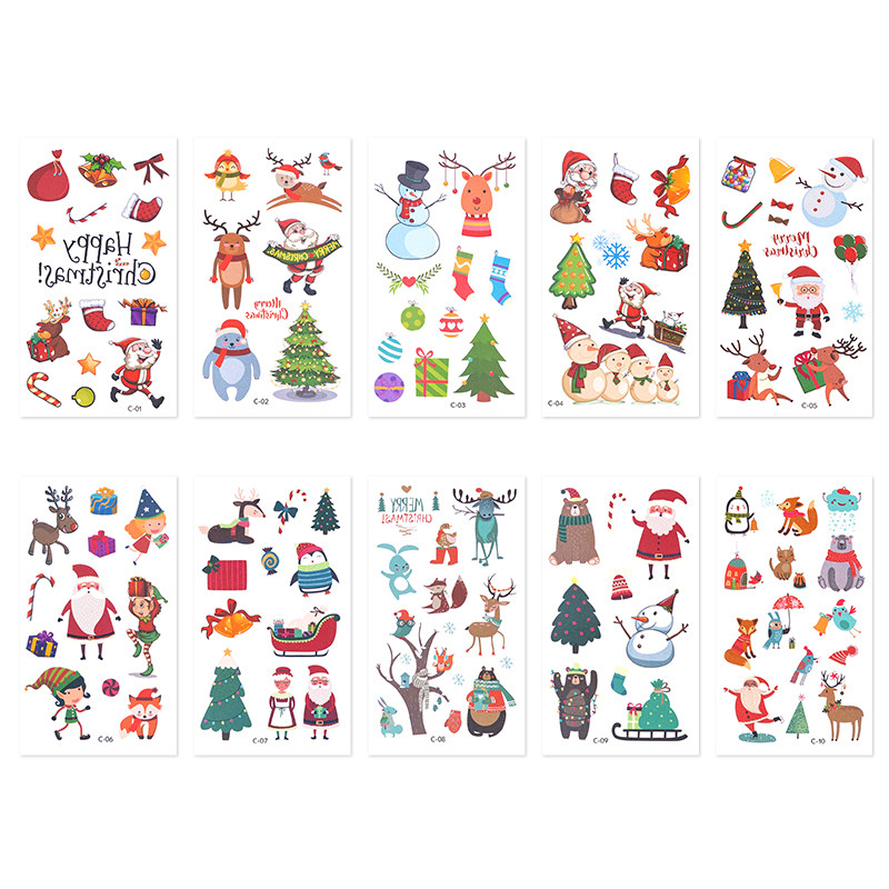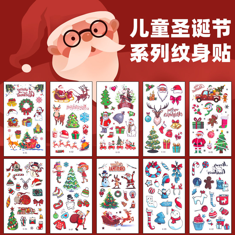 圣诞节儿童纹身贴妆容脸贴圣诞老人圣诞树花环礼物盒装扮装饰水印贴纸化妆贴纸活动表演拍照道具儿童cos