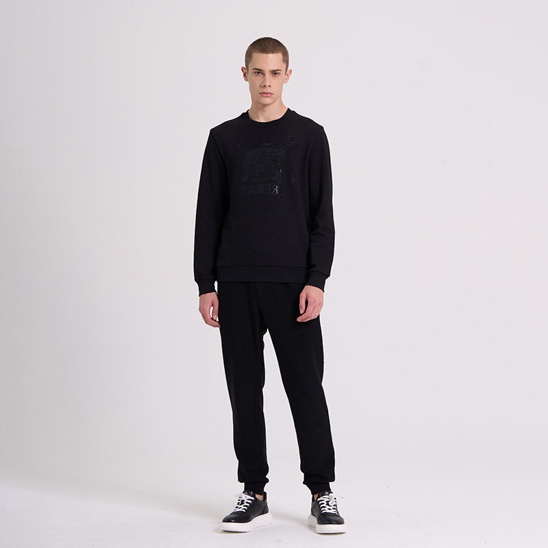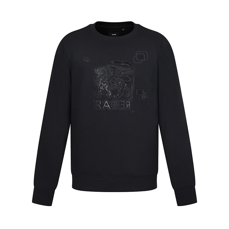 RARE威雅男装 前胸飞狮绣花工艺款上衣 秋冬新款黑色休闲圆领卫衣