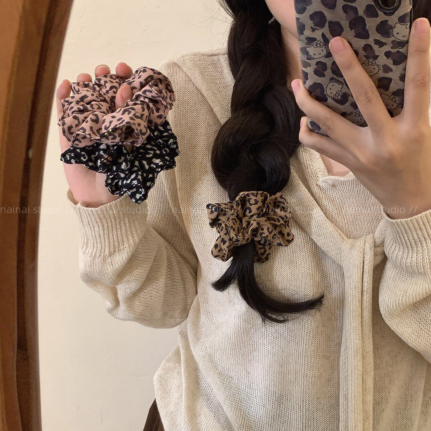 豹纹小肠发圈~复古韩国ins风丸子头扎头发马尾头绳辣妹秋季发绳女