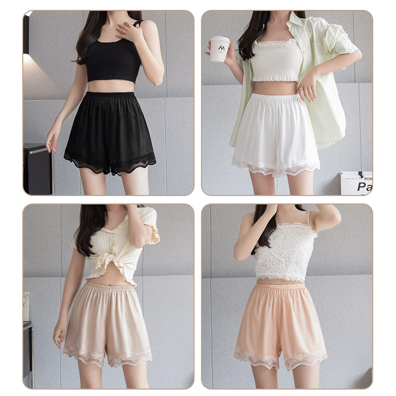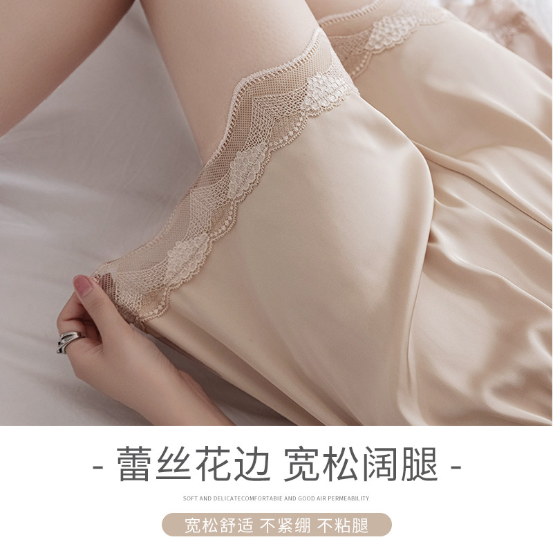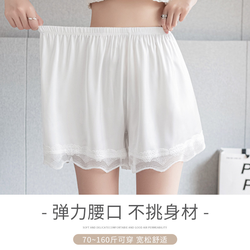 夏薄款冰丝安全裤女防走光大码宽松可外穿蕾丝不卷边睡裤打底短裤