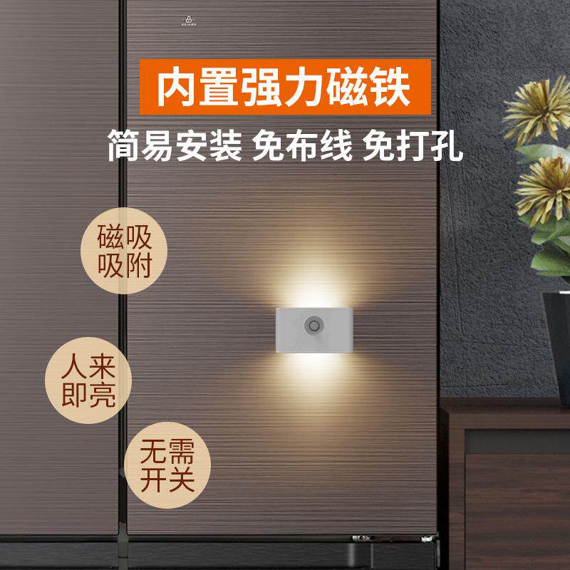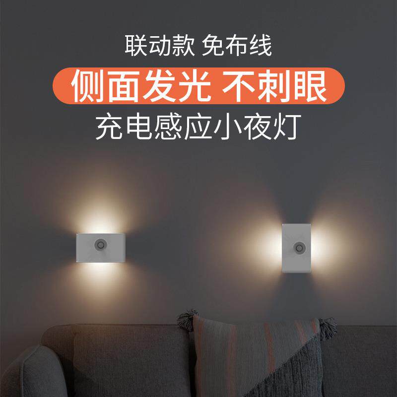 智能人体感应联动小夜灯床头走廊卧室夜灯创意充电感应壁灯