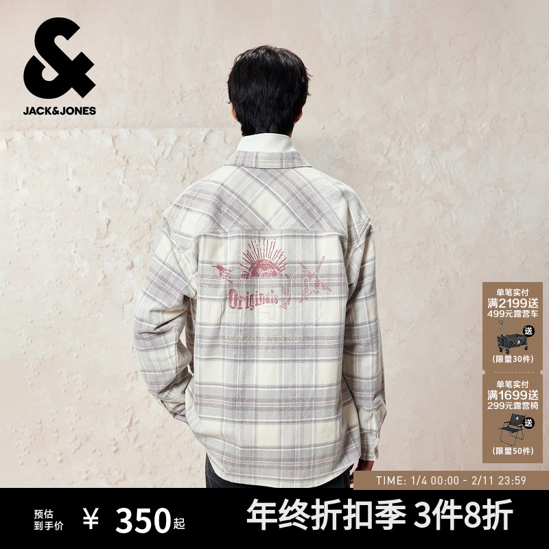 杰克琼斯男装秋季衬衫2025年新款纯棉宽松字母刺绣小格纹印花长袖