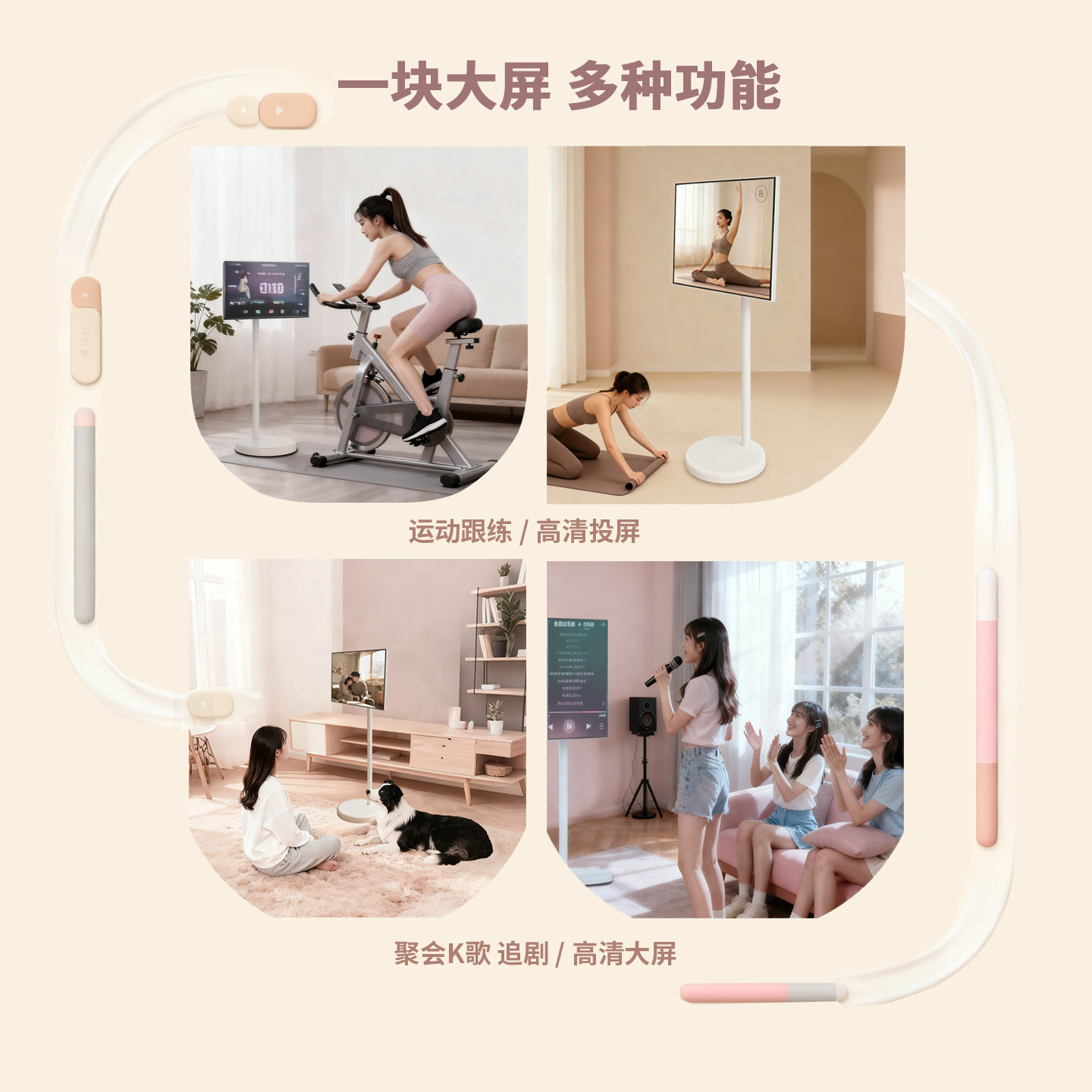 闪窈32寸护眼高清智能大平板可移动电视语音投屏家用办公追剧健身