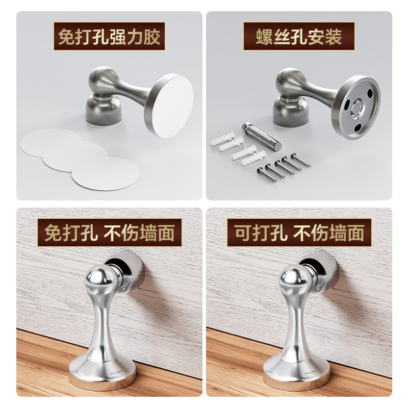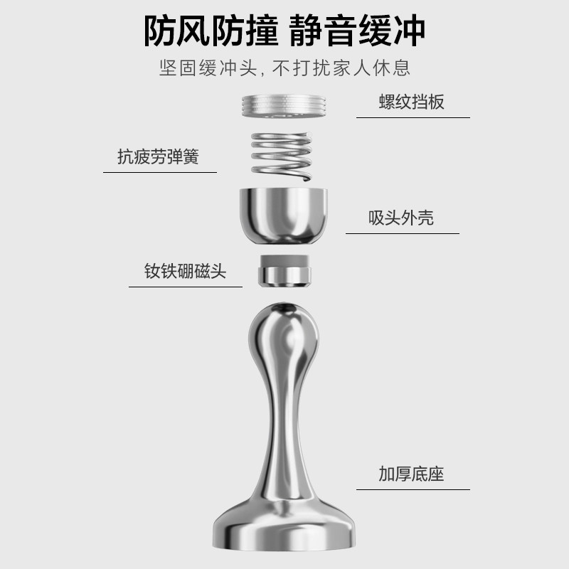 门吸免打孔新款304不锈钢强磁吸门阻器卫生间防撞门碰门挡器地吸