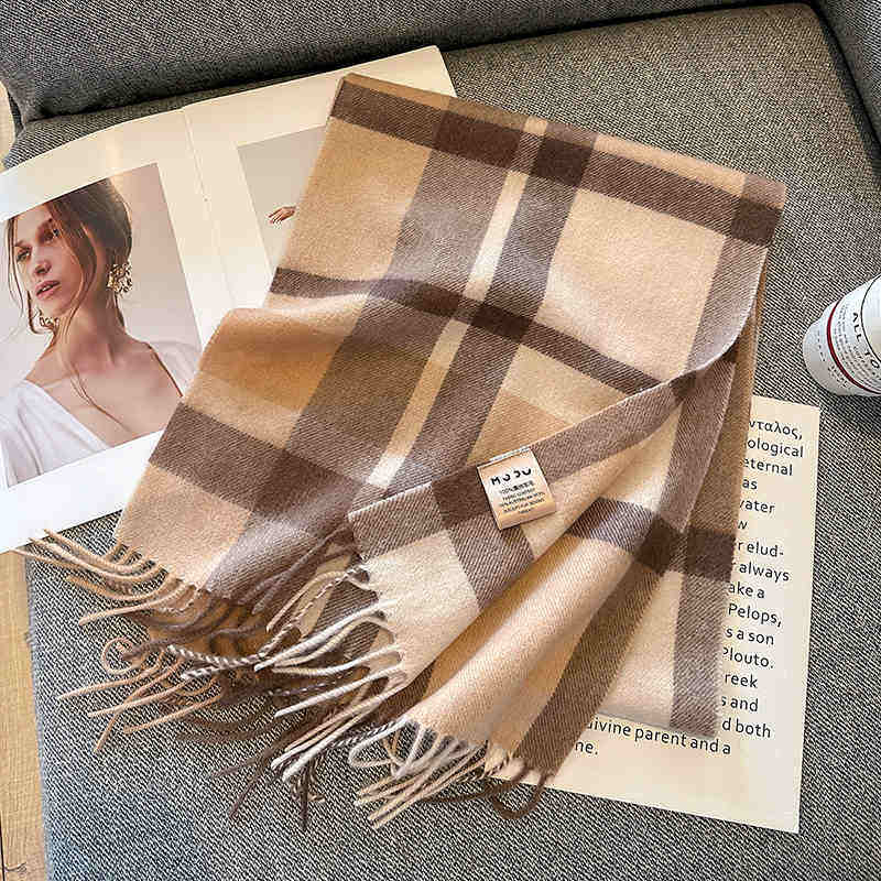 100%羊毛围巾女冬2024新款格子保暖高级感围脖男情侣披肩生日礼物