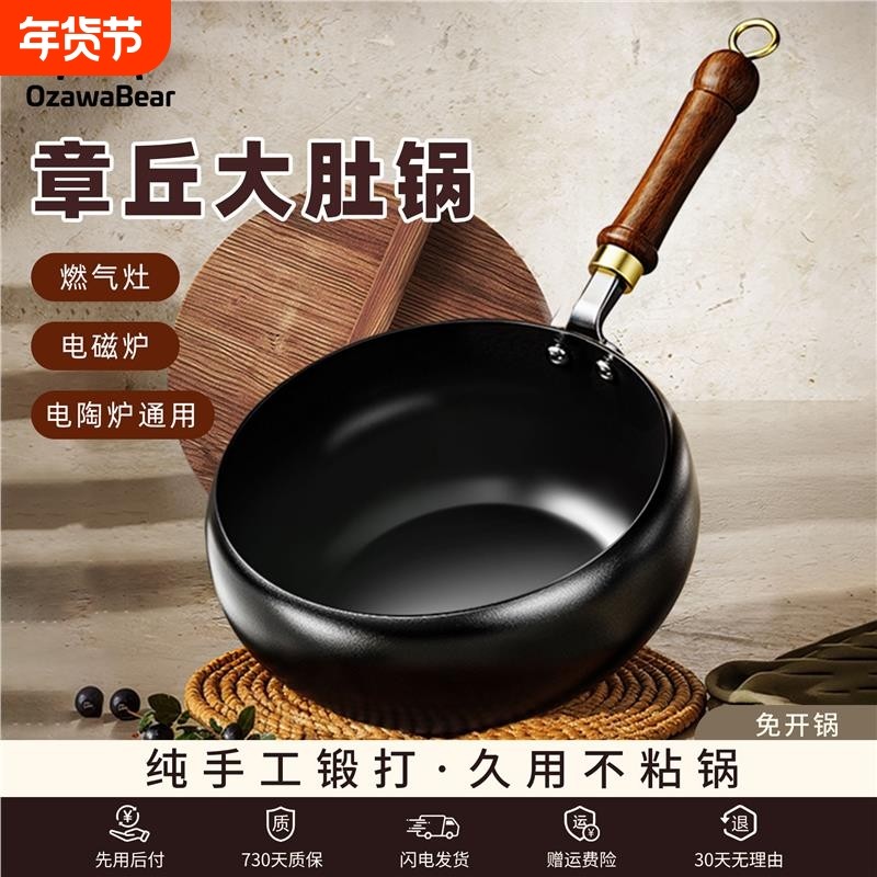 章丘炒菜锅传统铁锅官方旗舰老式炒锅家用不粘锅无涂层燃气灶适用
