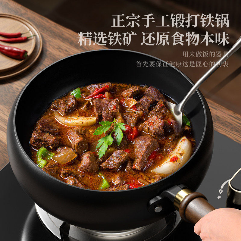 铁锅官方旗舰炒菜锅老式炒锅铁锅家用不粘锅无涂层燃气灶适用