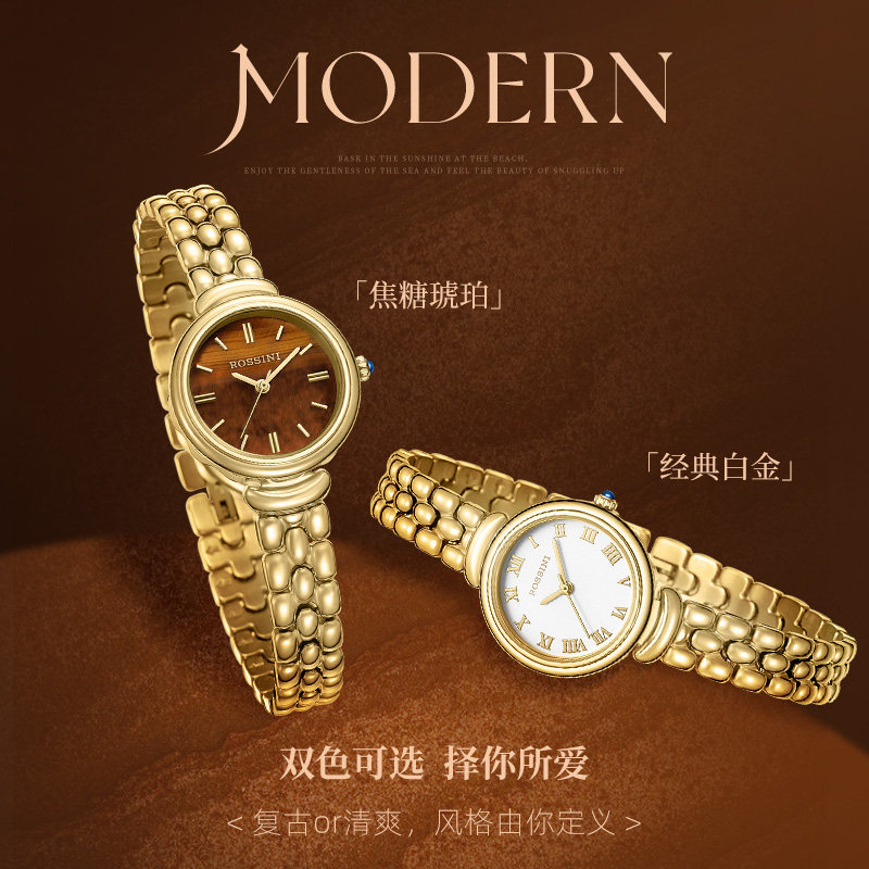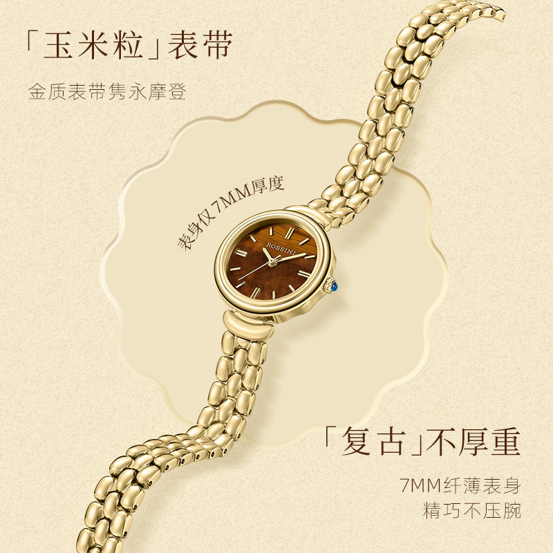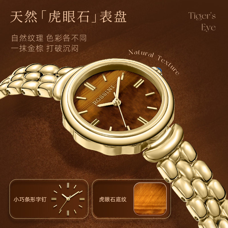 【圣诞礼物】罗西尼手表女复古轻奢小金表虎眼石小众石英表送女友