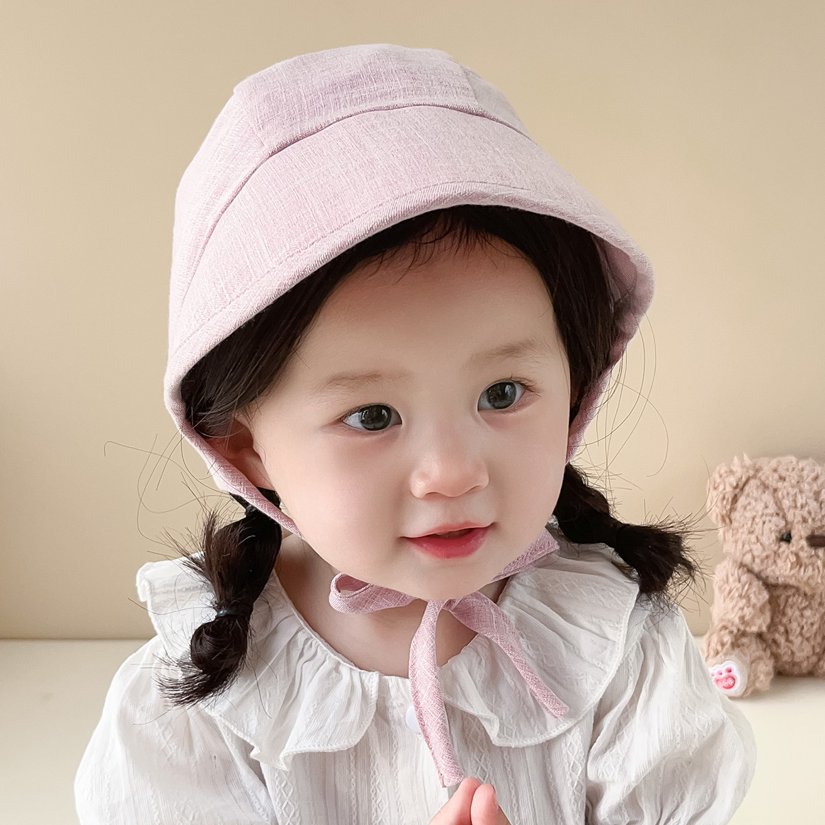 婴儿遮阳帽棉麻防晒防紫外线大帽檐男女宝宝儿童太阳帽飞行帽夏季