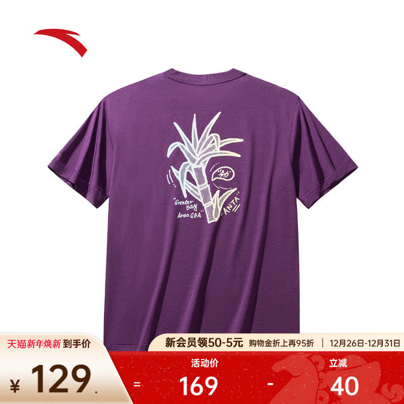 安踏短袖t恤男夏季新款潮流印花冰丝半袖宽松透气上衣172538103R