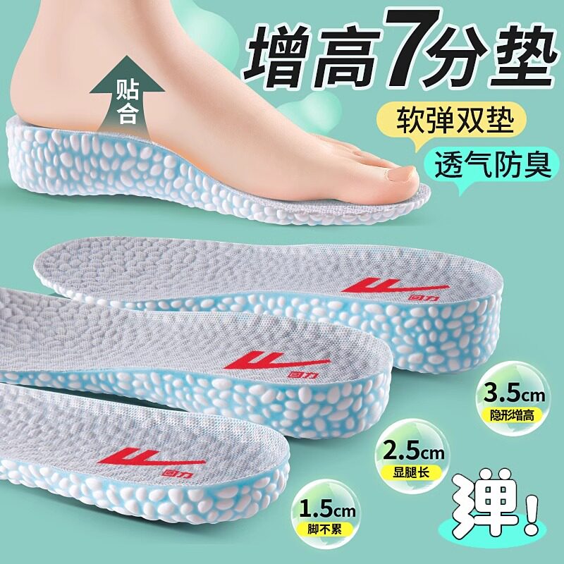 回力爆米花增高鞋垫男士女内增高垫高弹运动减震超软久站吸汗防臭