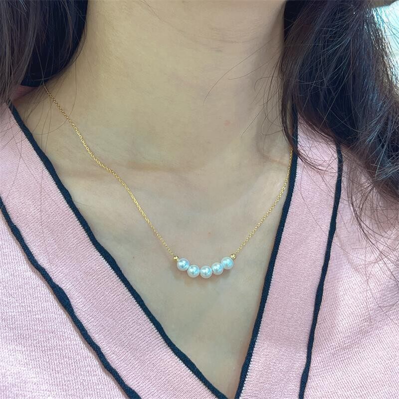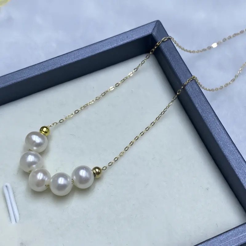 诸暨淡水无核珍珠微笑链s925银6-7mm轻奢项链5珠百搭优雅项链