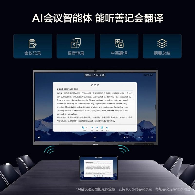 海信电视XW5F 86英寸智能会议平板一体机办公会议电视超高清触控屏电子白板视频会议投屏