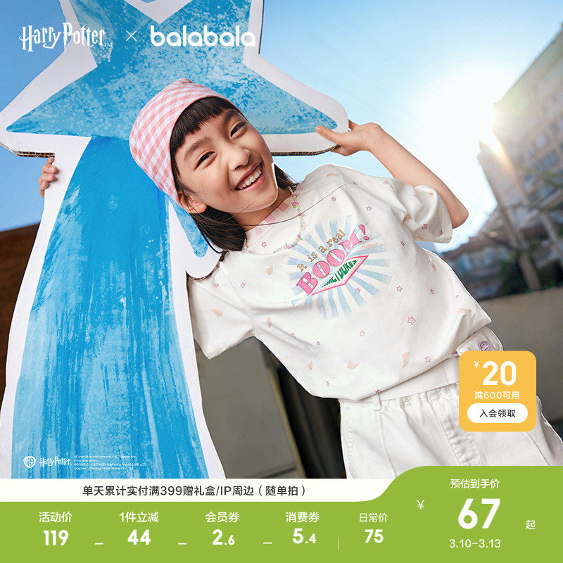 【哈利波特】巴拉巴拉儿童短袖女童t恤轻薄新款夏装速干休闲上衣