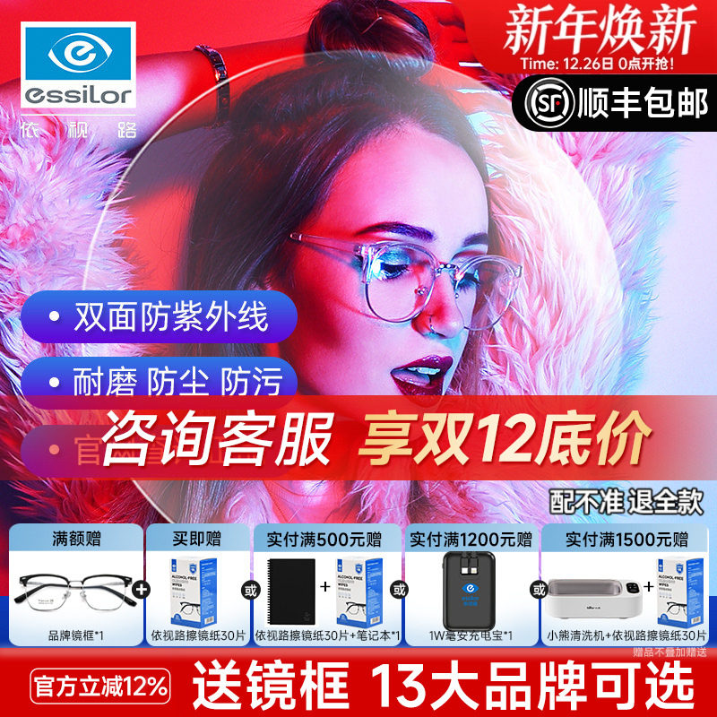 依视路镜片钻晶A4膜致近视防蓝光爱赞钻晶膜岩非球面膜御配近视镜