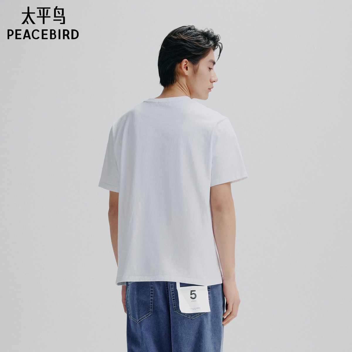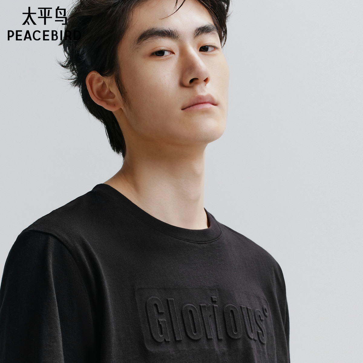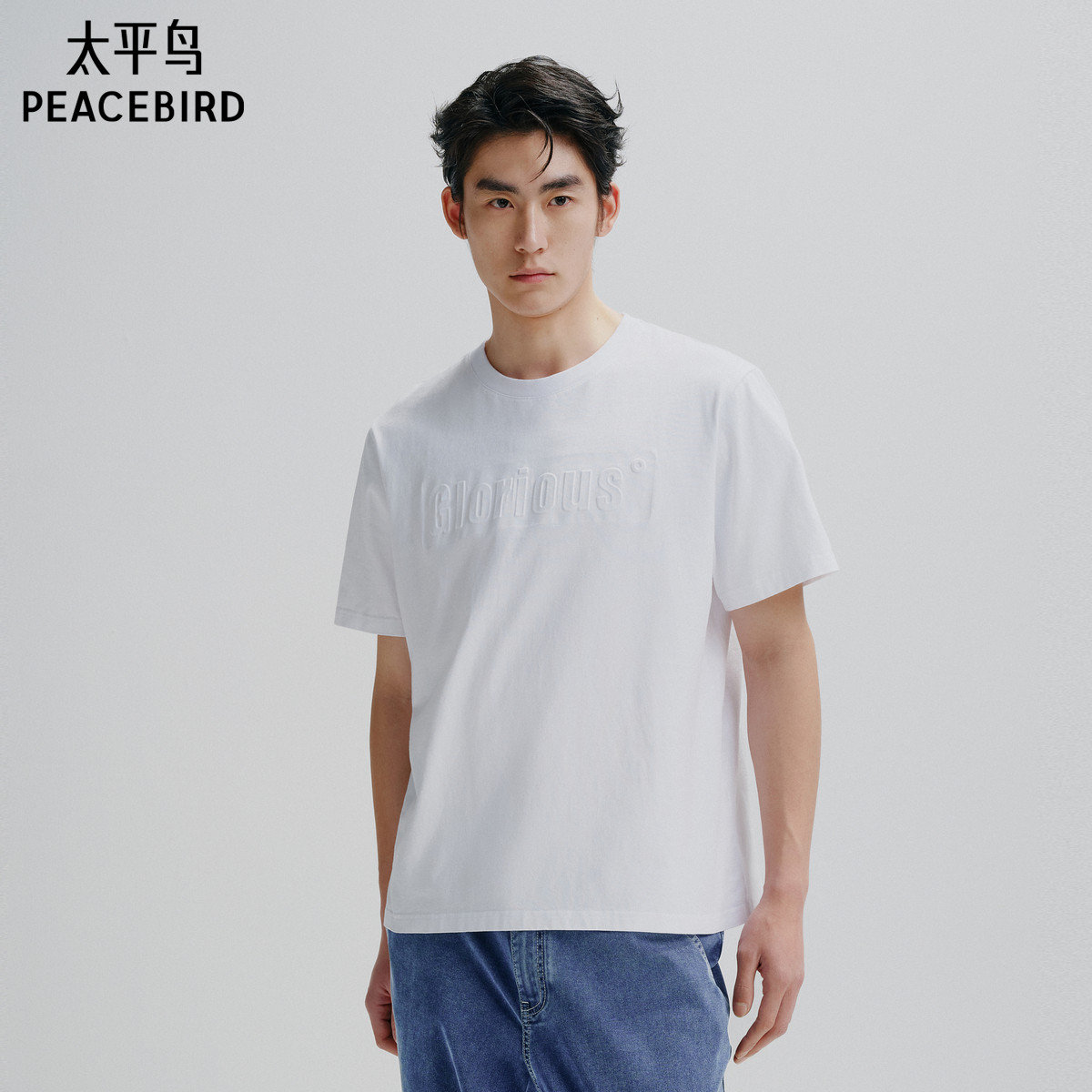 太平鸟男装 纯色T恤男25年夏季新款立体凸版印花纯棉短袖体恤潮