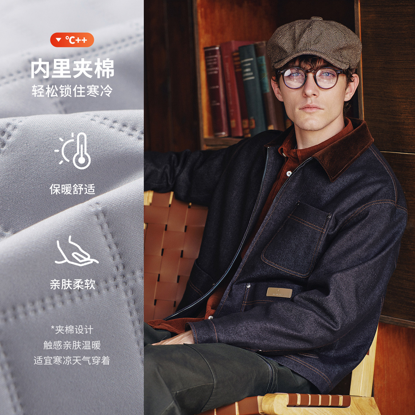 Navigare意大利小帆船巴恩风牛仔夹克秋冬新款翻领棉服保暖外套